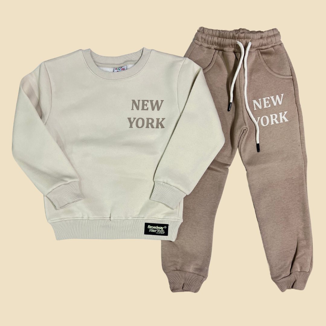 Beige fleece comfy New York set for you kid to stay comfortable wherever they go.