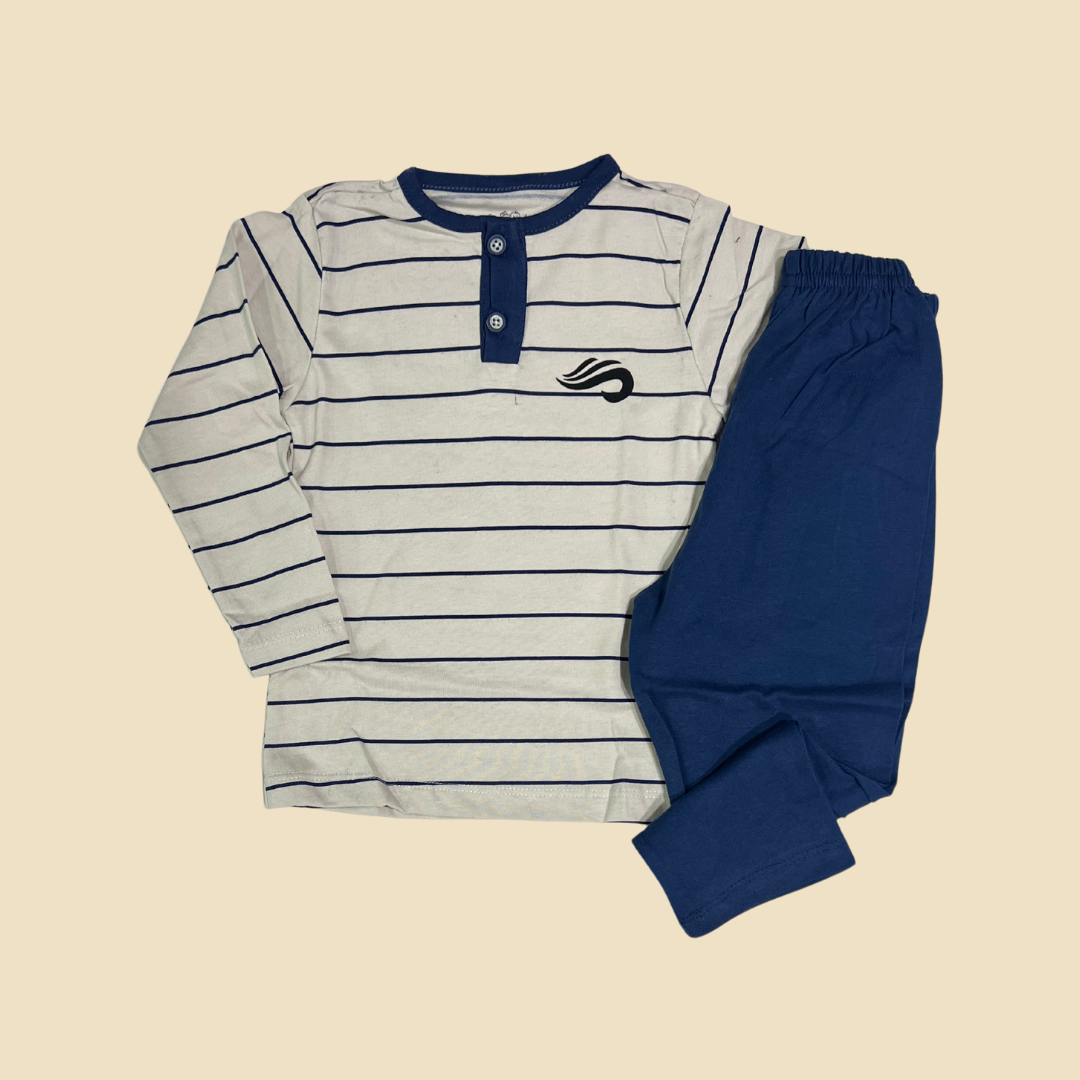 Stripped Pyjama with Navy pants.